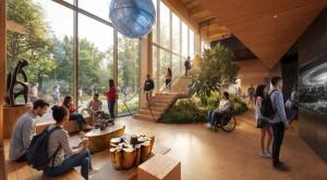 Rising to 186 feet, the new home for the Pardee School for Global Studies will be the tallest mass timber tower in the Northeast United States. It will house event and conference facilities, classrooms, faculty offices, and social spaces. Research centers converge around double-height “living rooms” for informal gatherings and community-building, connected by a social stair. This vertical collaboration network will broadcast the school’s internal activity along the building’s facade.